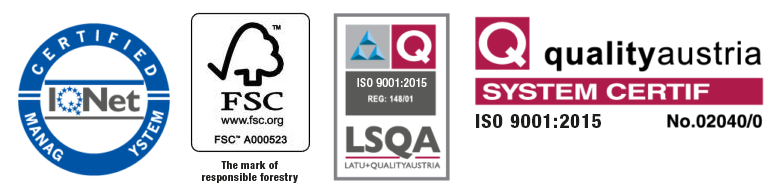 Todos los productos certificados producidos por Casabó S.A. fueron impresos en papel y cartón provenientes de madera de fuentes controladas, además de reforestaciones certificadas de acuerdo con rigurosos criterios sociales, ambientales y económicamente establecidos por la organización internacional FSC (Forest Stewardship Council)